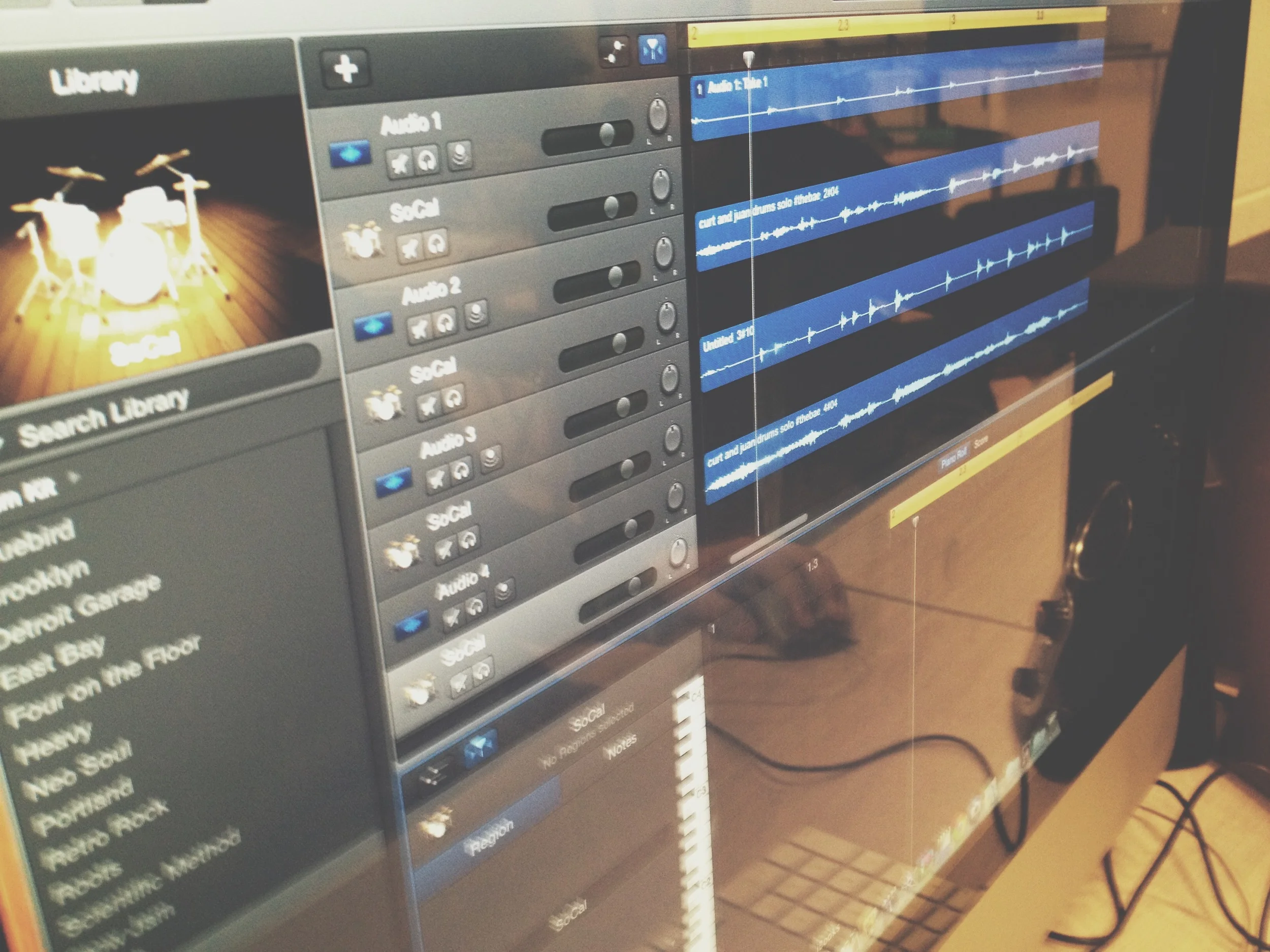 Following their Rap projects, students are now creating their own drum loops from scratch. They will generate percussion loops based on 4 layers. Students will generate these loops and they will be available for others to download and add to their own libraries of usable loops in Garageband. This connection to others through Twitter will be a motivator for some as they polish off their drum loops.